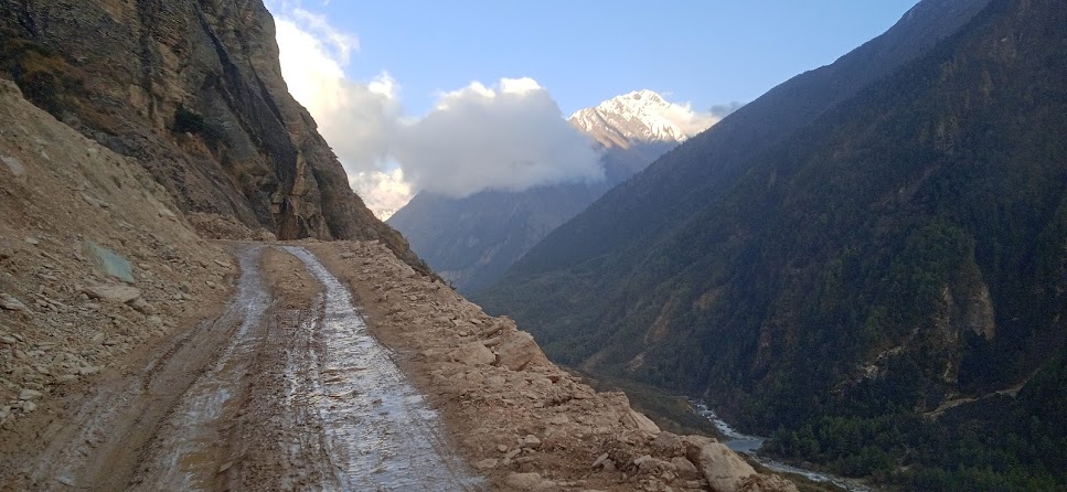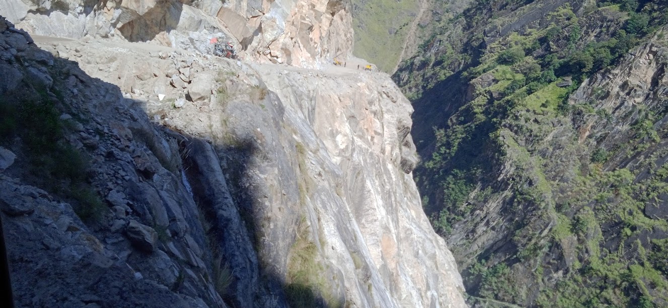 २९ अक्तूबर की दोपहर! धारचुला पार करते ही मोबाईल नेटवर्क चला गया| अब सड़क भी पहाड़ में उपर उठ रही है और संकरी हो रही है| गूंजी जाना है, लेकीन सड़क कितनी दूर तक चल रही है, इसका अन्दाज़ा नही है| यहाँ के जानकार बता रहे हैं कि गूंजी तक अब गाडी चलती है| लेकीन मुझे शक है| इसलिए इसके आगे जो भी मिलेगा, पूरी तरह अप्रत्याशित होगा| तवा घाट के पास हमें एक परिचित मिले, वे सड़क पर हमारे लिए ही रूके थे| वे एक अर्थ में हमारी इस गूंजी यात्रा के संयोजक थे| उन्होने ही कहा था कि गूंजी जाईए, ॐ पर्वत देख आईए| वे हमारे लिए रूके थे और मिलते ही उन्होने हमारी गाडी चलाना शुरू किया| धीरे सड़क टूटने लगी थी, इसलिए हमारे ड्रायवर को उनके आने से राहत मिली| अब शुरू होता है एक रोमांचकारी यात्रा!