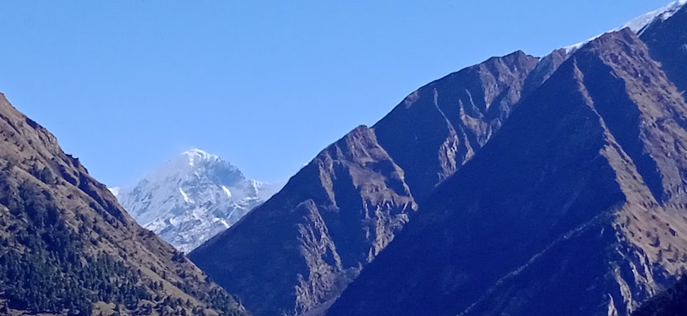... जैसे तैसे और कुछ चढाईयाँ जीप ने पार की| साँस अटक जाए ऐसी एक एक चढाई! साथ ही खाई से सट कर होनेवाला क्रॉसिंग| सब लोग गूंजी की बड़ी बेसब्री से राह देखने लगे| अन्तत: वह तिखी चढाई का हिस्सा जैसे तैसे पार हुआ और गब्रियांग या ऐसा ही कुछ मिलिटरी का युनिट आया| वहाँ की ऊँचाई १२ हजार फीट के उपर थी, निश्चित ही हम ३५०० मीटर्स ऊँचाई तक आए हैं| और वह पता भी चल रहा है| बहुत ज्यादा ठण्ड, आसपास और अब तो पीछे भी हिमशिखर हैं! पेड़ अब कम नजर आने लगे हैं| रुखे सुखे पहाड़ सामने पास दिखाई दे रहे है| इस चेक पोस्ट पर जाँच हुई और गूंजी की यात्रा में जा रहे हैं, ऐसा बताने पर जाने की अनुमति मिली| बीच बीच में किचड फैली है, वहाँ ध्यान से जाने के लिए कहा| अब तक लगभग हर कोई गूंजी के लिए डेस्परेट हुआ है! कब आएगा गूंजी? लेकीन बाहर का सारा माहौल यही कह रहा है-