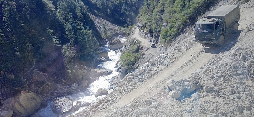 इसके बाद की यात्रा आसान हुई| किस्मत से गाड़ी भी बड़े नुकसान से बच गई! अनीलजी की जान में जान आयी! बाद में उन्होने बताया कि हमें सहायता करने के लिए आए जो दूसरे ड्रायवर थे, वे शराब पिए हुए थे| और सत्गड पहुँचने पर उन्होने कहा कि उन्होने भी शराब पी थी! अन्यथा वे चलाने का दुस्साहस ही नही कर पा रहे थे| बिल्कुल स्वाभाविक है| क्यों कि ऐसी भयानक सड़क पर ड्रायविंग बिल्कुल दुभर काम है| और ऐसे अन्य भी डरावने और थँकलेस काम शराब की सहायता से ही तो किए जाते हैं- जैसे पोस्ट मार्टम हो या गटर साफ करने का काम हो! खैर! धारचुला पहुँचने पर जब नेटवर्क मिला और फोन शुरू हुआ, तब पहले गूंजी के बारे में जानकारी प्राप्त की! निकलने के पहले लगा ही नही था कि वहाँ तक पहुंच सकेंगे, इसलिए जानकारी देखी नही थी! जब जानकारी देखी, तब पता चला कि गूंजी ठीक भारत- तिब्बत- नेपाल सीमा से सटा है और उसकी ऊँचाई ३२०० मीटर हैं! और काला पानी तो अब डिस्प्युटेड एरिया में है| बिल्कुल सीमा पर| और कुछ ही समय पहले नेपाल ने काला पानी पर भी क्लेम किया है| इसलिए शायद भारत सरकार ने त्वरा दिखाते हुए यह ट्रेक रूट खड़ा किया और वहाँ यात्रा भी शुरू की है| एक तरफ ऐसा भी लगा कि चीन की वाकई हम पर कृपा है| चीन के खतरे के कारण ही हम इतने चुनौतिपूर्ण और एक कोने में होनेवाले स्थान में भी सड़कें और अन्य व्यवस्थाएँ खड़ी कर रहे हैं| अन्यथा अन्दमान- निकोबार के किसी दूरदराज के क्षेत्र जैसा ही यह भी नजरअंदाज़ तो नही किया गया होता, ऐसा लगता है| इंटरनेटर पर गूंजी का तपमान देखा तो वह भोर को -५ था! वाकई यह क्षेत्र इतना भीषण है कि वहाँ गाव जैसी बस्ती है, यही एक आश्चर्य है| वहाँ होटल मिला, होम स्टे मिला, लोग मिले, यही आश्चर्य है! और अब नवम्बर में गूंजी के लोग तो नीचे आ जाते हैं| सर्दियों में मिलिटरी के लोग छोड़ कर और कोई वहाँ नही रहते हैं, ऐसा सुनने में आया|