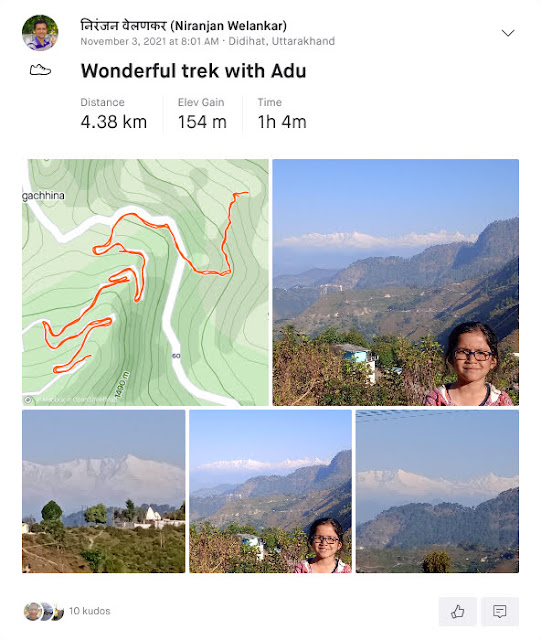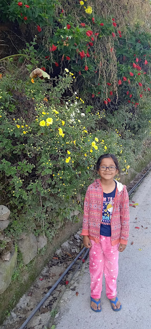 ३ नवम्बर २०२१! हिमालय से लौट कर ढाई महिने हो गए हैं, फिर भी वे दिन आँखों के सामने हैं| आप सब ठीक होंगे, ऐसी आशा करता हूँ और आगे के अनुभव शेअर करता हूँ| बुंगाछीना गाँव में होनेवाली पूजा, यही इस पारिवारिक यात्रा का मुख्य कारण था| उसके लिए सब बुंगाछीना पहुँचे| सत्गड- पिथौरागढ़- बुंगाछीना ऐसी यात्रा में दूरी सिर्फ ५० किलोमीटर होगी, लेकीन ढाई घण्टे लगे| बुंगाछीना में कुछ दिन पहले आए थे, तब प्रदीपजी के साथ पास के पहाड़ पर और पगडण्डियों पर अच्छा सा घूमना हुआ था| अब उसी पहाड़ के मन्दिर पर अदू को ले जाना है| जब हम गूंजी गए थे, तब वह यहाँ अच्छे से ठहरी थी| घर की भेड़- बकरियाँ, खेत का वातावरण, रिश्तेदार और अलग लोग, अत्यधिक ठण्ड, रात में बाघ का डर यह सब माहौल उसने बहुत एंजॉय किया| अत्यधिक ठण्ड से उसका चेहरा काला हो गया है| हम सभी का! उसके गाल बाद में लाल होने की मै राह देख रहा हूँ!