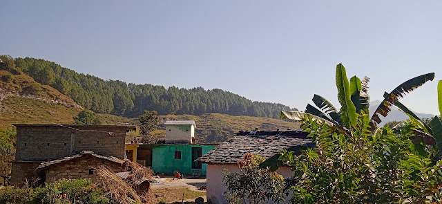अगले दिन पूजा है, इसलिए तैयारी में फिर गाँव में आना हुआ| कुमाऊँ में गाँव छोटें हैं, लेकीन शहर में जाना दुभर होने के कारण छोटे गाँवों में भी शहर की बहुत सी चीज़ें मिलती है| दुकानों में उतनी विविधता होती है| यहाँ सब तरफ समुदाय के बीच का अपनापन देखने को मिलता है| सब लोग एक दूसरे के साथ चलते हैं| गाँव में पूजा है और सौ लोगों को भोजन देना है| लेकीन इसकी तैयारी और व्यवस्था भी सामुहिक तरीके से ही की जाएगी| गाँव के मन्दिर में सामुहिक रसोई के बड़े बर्तन हैं| वे वहाँ से ले आए| पानी के लिए तो झरने से लगा हुआ नल है ही| ऐसा ही कुछ शहर में करना होता तो बहुत खर्चा आता| यहाँ सब अच्छा है| बस गूड़ या मिशरी की चाय मुझे दिक्कत में डाल देती है| गूड़ या मिशरी का टुकड़ा चाय में डुबो कर मै चाय नही पी पाता हूँ| उसके बजाय मै वैसे ही चाय पीता हूँ और बाद में गूड़ या मिशरी मुंह में डालता हूँ! वैसे भी यहाँ चाय के स्वाद के साथ उसकी गर्मी और भांप भी उतनी ही महत्त्वपूर्ण होती है|