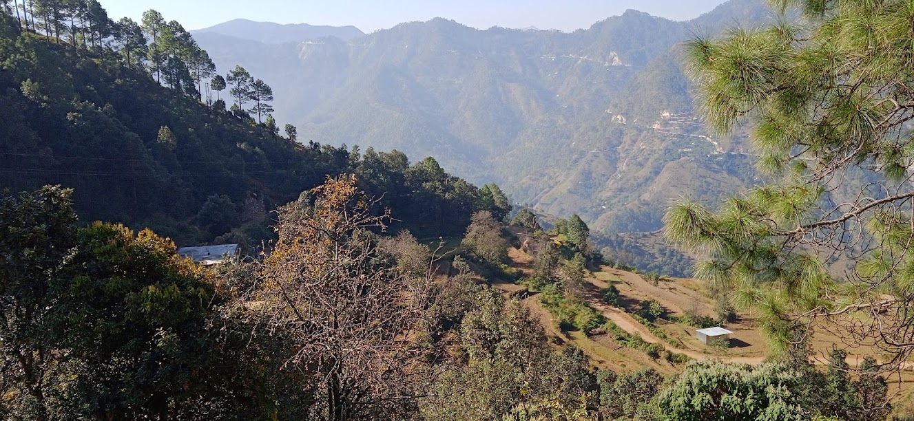 सुबह नीन्द जल्द खुली| तैयार हो कर बाहर आया और आसपास का परिसर देखा| पहले सड़क शिंगाली तक ही थी| लेकीन अब सड़क और अन्दर तक जाती है| बस्तड़ी गाँव नक्शे पर हैं और थोड़ी बस्ती भी वहाँ पर है| यहाँ आँगन से भी पंचचूली और अन्य शिखर सुन्दर दिखाई दे रहे हैं| पूरब में पहाड़ है, इसलिए धूप आने में बहुत समय लगा| तब तक चाय के कई राउंडस हुए| बाकी लोगों को मुख्य सड़क पर ओगला में मिलूँगा, ऐसा कह कर निकला| पहले बस्तड़ी के पास गया| मुझे कहा गया था कि वहाँ अब कुछ भी अवशेष नही बचे हैं| फिर भी एक बार देखने का मन हुआ| गाँव जानेवाली पगडण्डी जहाँ से नीचे उतरती है, वहां तक जा कर लौटा| अब लगभग पाँच किलोमीटर का बेहतरीन ट्रेक करना है|
