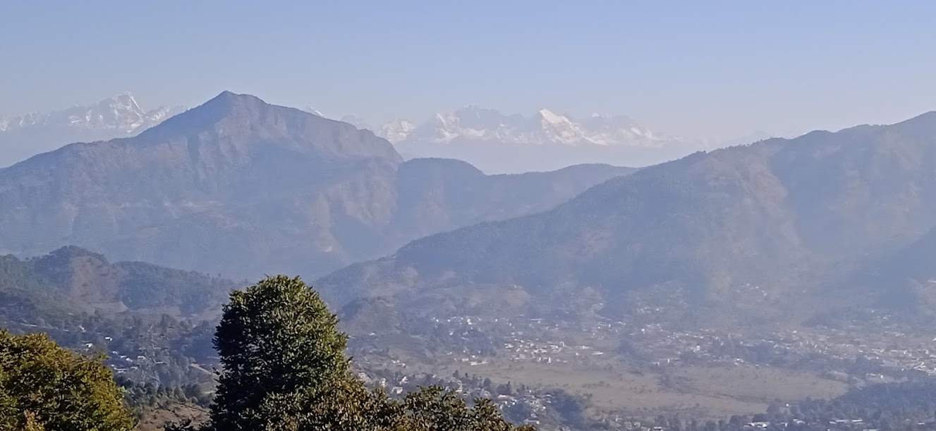 ७ नवम्बर की सुबह| कल पिथौरागढ़ में ही ठहरे थे| दो-मंजिला घर, आँगन और आँगन में सुन्दर बगीचा और फूल! यहाँ पूरब की तरफ बड़ा पहाड़ नही है, इसलिए धूप सुबह ६ बजे ही मिली| यह घर थोड़ी ऊँचाई पर है, इसलिए सामने पिथौरागढ़ शहर फैला दिखाई देता है| साथ में शहर से सटे छोटे पहाड़ भी दिखाई देते हैं| यहाँ से चण्डाक हिल की दूरी लगभग ८ किलोमीटर है| वहाँ से थोड़ा आगे मोस्टा मनू मन्दिर है| वहाँ तक घूमने का तय किया| कुल मिला कर लगभग १८- २० किलोमीटर का ट्रेक होगा| कभी भी न देखे हुए परिसर में ट्रेक होगा| पानी की बोतल, कुछ गूड़पापड़ी आदि सामान पीठ पर ले कर निकला| रास्ता पहले पिथौरागढ़ शहर में जाता है और वहाँ के मेन मार्केट सिल्थाम से चण्डाक हिल की तरफ सड़क निकलती है| यहाँ कई जगह पर आईटीबीपी और बीआरओ के केन्द्र हैं| मिलिटरी की यातायात चलती रहती है| तेज़ी से चलते हुए बीस मिनट में मेन सिटी में पहुँचा| यहाँ नाश्ता मिलने की उम्मीद थी| लेकीन आगे देखता हूँ, ऐसा सोचते सोचते होटल पीछे छूट गए| और सुबह के आठ बजे ज्यादा होटल खुले भी नही थे| आगे चण्डाक के पास होटल मिलेगा, ऐसा पता चला| साथ में लायी गूड़पापड़ी खा कर आगे बढ़ा| धीरे धीरे पिथौरागढ़ शहर पीछे होता गया और निर्जन इलाका शुरु हुआ| यहाँ सुबह टहलने के लिए निकले हुए लोग दिखे| बाहर आने पर दूर से चण्डाक हिल का परिसर दिखाई देने लगा|