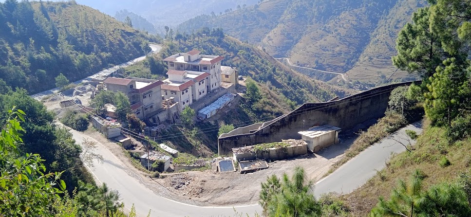 उत्तराखण्ड में मन्दिर बड़ी संख्या में हैं| इस तरफ भी कई मन्दिर दिखे| एक मन्दिर का नाम 'उल्का माँ' है! सड़क धीरे धीरे उपर चढ़ती जा रही है और अब दूर तक का नजारा दिखने लगा है| कुमाऊँ मण्डल विकास निगम का पर्यटक आवास मिला| वहाँ ॐ पर्वत के फोटो के लिए अन्दर गया| लेकीन अब तक वह होटल जगा ही नही है, इसलिए तुरन्त आगे बढ़ा| चण्डाक हिल पहाड़ि पर है और वहाँ से सड़क नीचे उतरती है और प्रसिद्ध चण्डी मन्दिर वहाँ है| सूरज जैसा उपर उठ रहा है, वैसे कोहरे से उठते हुए सुदूर के हिम शिखर दृग्गोचर हो रहे हैं| सामने पहाड़ की नीचली तरफ छोटे गाँव दिखाई दे रहे हैं| एक सड़क मेन रोड़ से निकल कर नीचे गाँव की तरफ जा रही है| आगे जाने के बाद वह गाँव उपर से बहुत सुन्दर दिखाई दिया| एक पर्यटन स्थान होने के कारण यहाँ सड़क बहुत बेहतर बनी है| यहाँ साईकिल चलाने में बड़ा मज़ा आता! लम्बा घाट और आसपास अत्यधिक रमणीय परिसर!