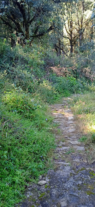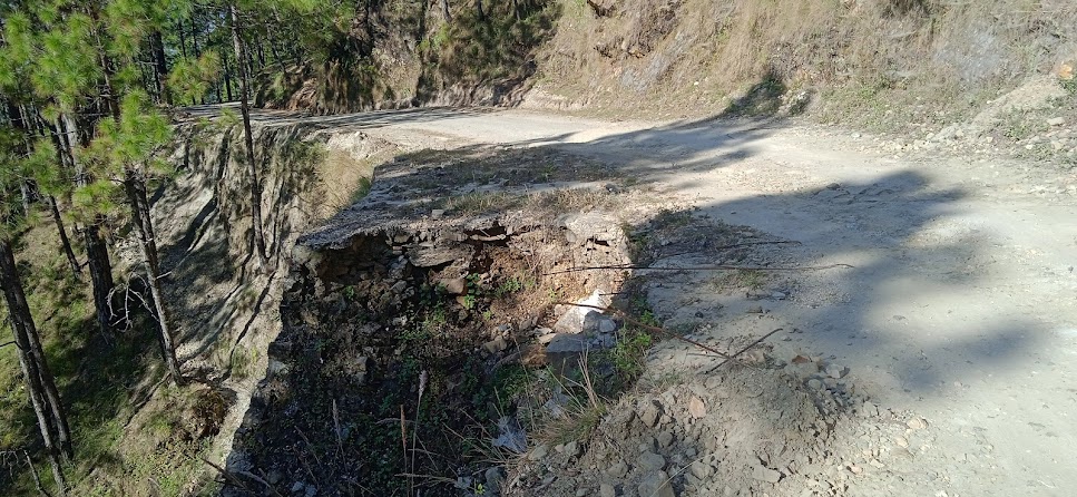 बुँगाछीना से पिथौरागढ़ न जाते हुए एक सड़क सिधी कनालीछीना की तरफ जाती है| यह सत्गड का शॉर्ट कट है| यहाँ बड़े वाहन उतने नही जाते हैं| एक नया रूट देखने का अवसर मिला| ठीक पहाड़ के बीचोबीच से गुजरनेवाली सड़क| छोटे छोटे गाँव और हरी- भरी प्रकृति! देवदारों का साम्राज्य! इतने दिन यहाँ घूमने के बाद भी इस सड़क के दृश्य बड़े सुन्दर लगे| तभी तय किया कि जैसा सम्भव हो, इस रूट पर भी एक ट्रेक जरूर करूँगा| और कुछ ही दिनों में किया भी| इस सड़क पर अक्तूबर की बरसात से हुई क्षति दिखाई दे रही है| कहीं कहीं सड़क इतनी सिकुड़ी है कि जीप बड़ी मुश्किल से जा पाती है| कुछ हिस्सा बह गया है| दूर जो नजारे दिखाई देते हैं, उनमें हरियाली और वृक्षों के साथ बीच में मटमैले रंग के धब्बे भी दिखाई देते हैं| ये धब्बे वास्तव में लैंड स्लाईड की जगहें हैं| वहाँ तेज़ी से पानी आने के कारण जमीन ढह गई और सड़क बह गई| पेड़ भी टूटे| दूर के रमणीय दृश्यों में ये धब्बे भी दिखाई दे रहे हैं...