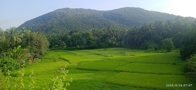 Slowly the Sun started to emerge out of the flog. What a road this is! It is Konkan! Road is slightly plain at the moment. Villages here are quite unique! There are many villages which form surnames of persons. For example, Tendola village is in this region only. And you must be knowing Sachin Tendulkar! Even in Karnataka there are villages which are surnames themselves! For example, there was one village I saw nearby on map. Its name was Telagi! Such fun. Slowly the fog got scattered and it was sunlight all over. Today's distance is very small. Around half way, I am meeting a school and SAHAJ Trust in Banda. Now I am seeing clouds formed at some distance.