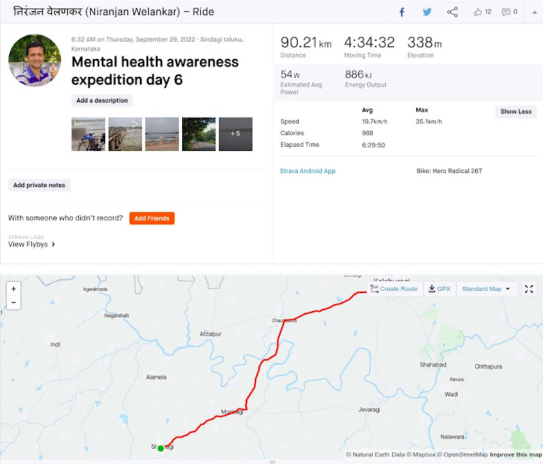 Morning of 29th September, sixth day of the expedition and one major day in that today I am going to meet senior members of Bharat Vikas Sangam Shri Basavraj ji, Shri Shastriji and others in Kalaburgi. This expedition would not have been possible without their help. So before starting the ride, was feeling eager for this meeting. Yesterday in Sindagi. Shri. Dattuji helped me well. On the morning also, he came when I was leaving the house. Just feel gratitude towards all those who were there with me on each stage of the expedition. With company and help from all such people, I feel that it was not a solo expedition, but rather a collective effort.